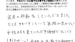 石狩市のお客様より「家具の移動」作業へのご感想です