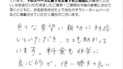 石狩市のお客様より「蝶番修理」作業へのご感想です