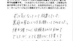 石狩市のお客様より「庭木の伐採」作業へのご感想です